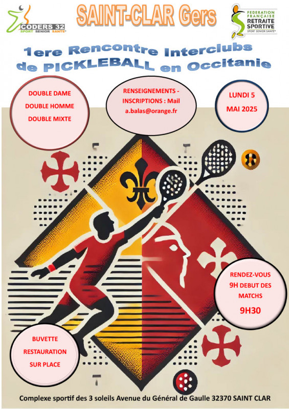 Le Coders 32 organise le lundi 5 mai 2025 des rencontres inter-clubs Occitanie en pickleball sous la forme de tournois sur la journée à St Clar.